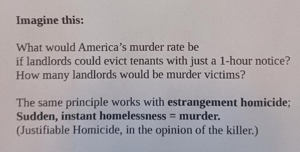 we see very little attention given to financially poor, often underperforming people - who kill - because a romantic estrangement will cause their actual, real, immediate homelessness.