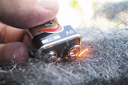 A 9v battery, cool enough to hold in the hand, can be used to create a fire too hot to hold.